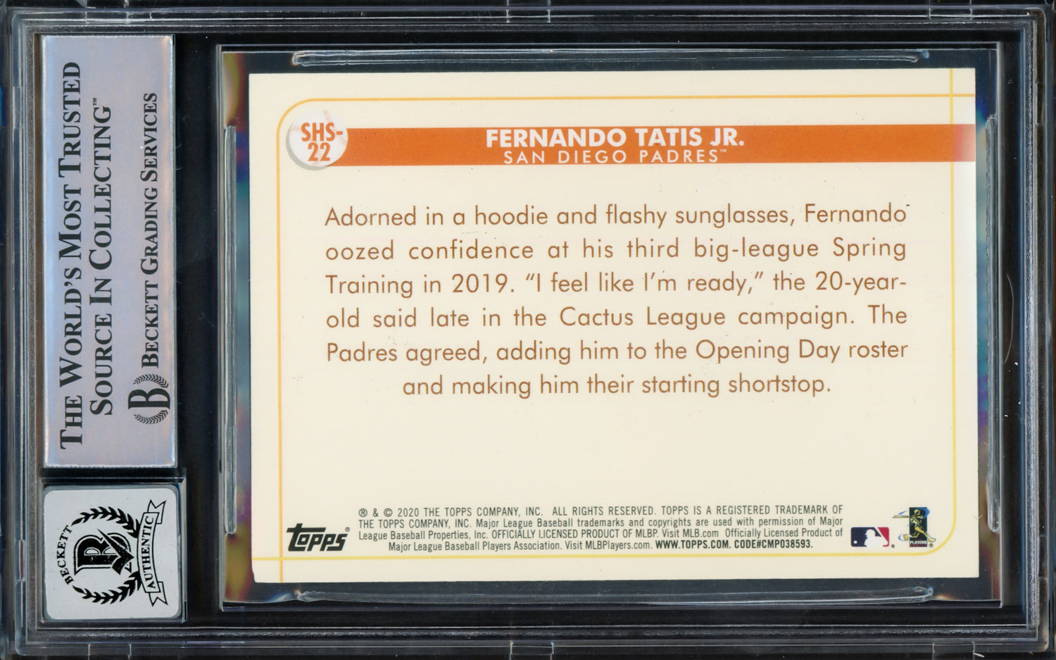 Fernando Tatis Jr. Autographed 2020 Topps Opening Day Spring Has Sprung Card #SHS-22 San Diego Padres Auto Grade Gem Mint 10 Beckett BAS #15774873