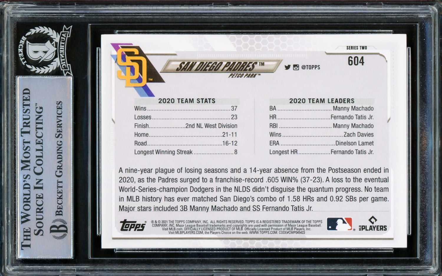 - Official 2021 Topps Card #604 – A significant collectible from one of the most recognized trading card brands.