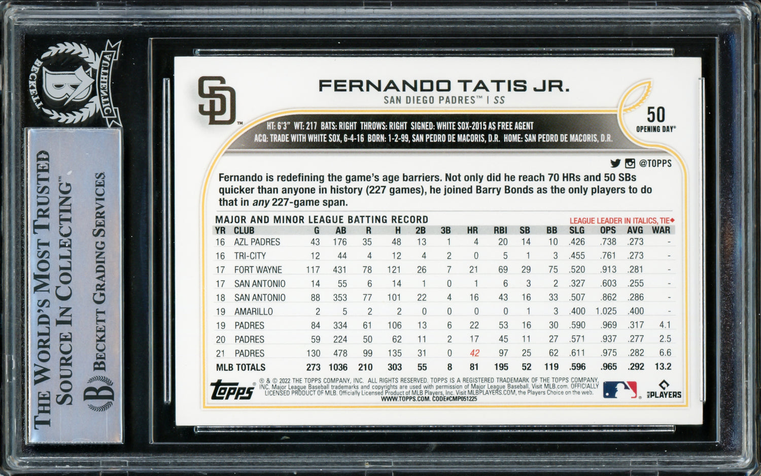 Fernando Tatis Jr. Autographed 2022 Topps Opening Day Card #50 San Diego Padres Beckett BAS #15782570