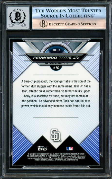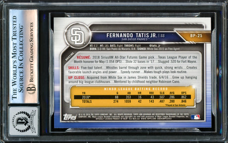 Fernando Tatis Jr. Autographed 2020 Bowman Card #47 San Diego Padres Beckett BAS #16177971
