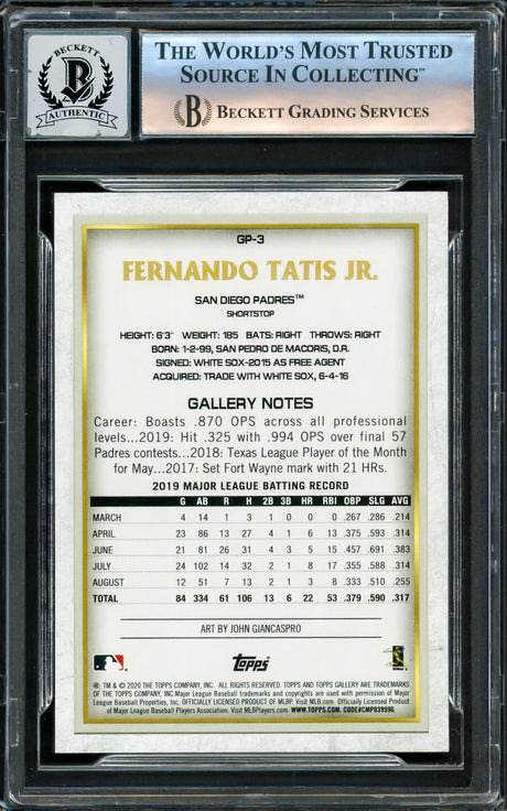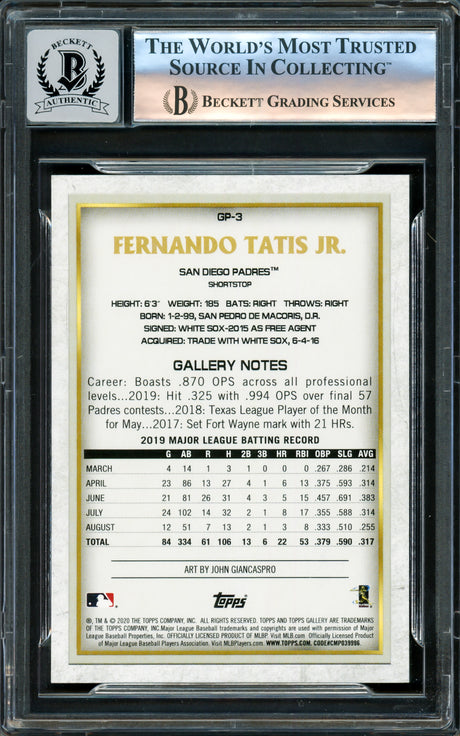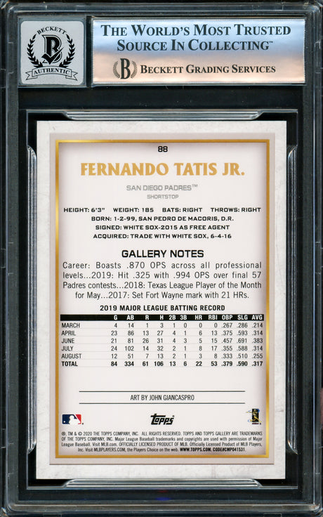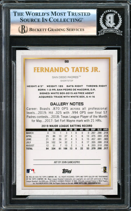 Fernando Tatis Jr. Autographed 2020 Topps Gallery Card #88 San Diego Padres Beckett BAS #16177989