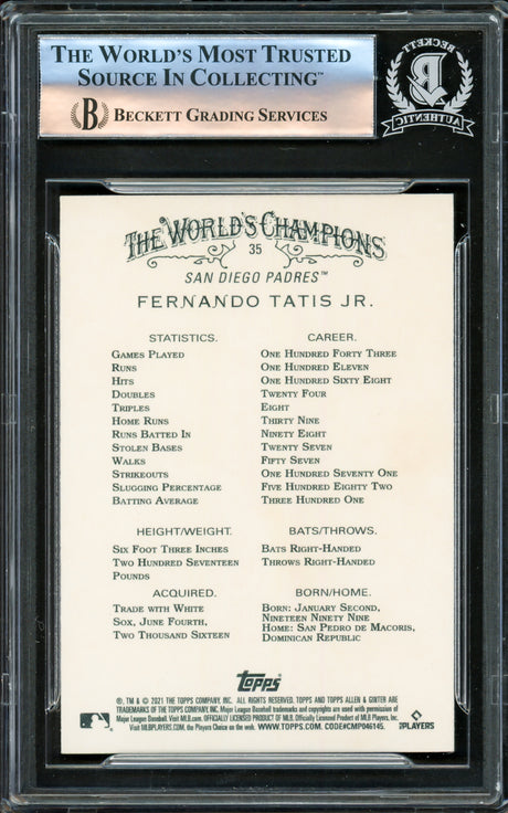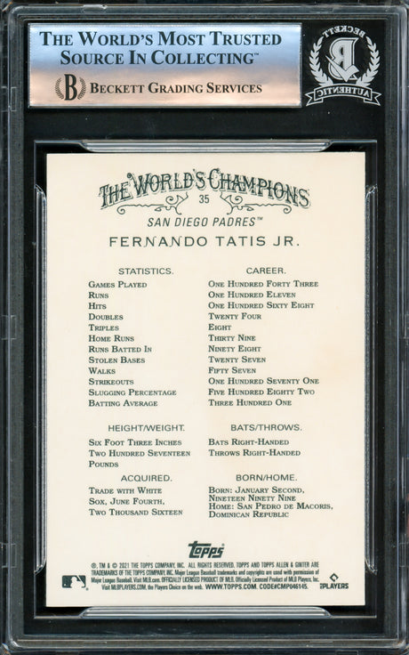 Fernando Tatis Jr. Autographed 2021 Topps Card #323 San Diego Padres Beckett BAS #16178002
