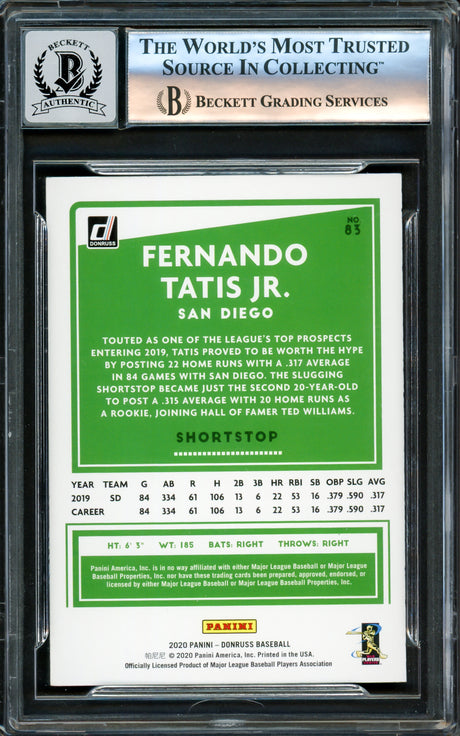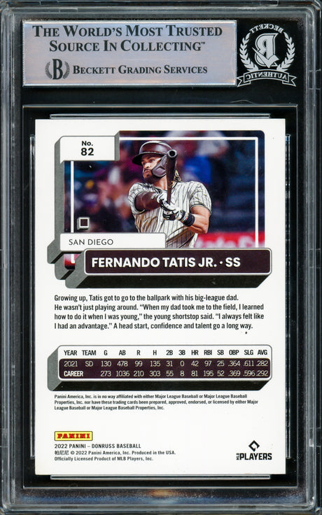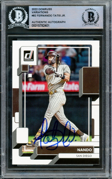 Fernando Tatis Jr. Autographed 2022 Donruss Card #82 San Diego Padres Beckett BAS #15782400