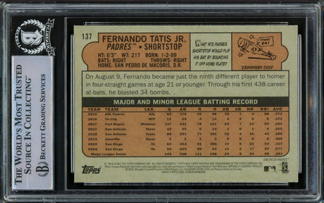 Fernando Tatis Jr. Autographed 2021 Topps Heritage Card #137 San Diego Padres Beckett BAS #15782357