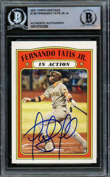 Fernando Tatis Jr. Autographed 2021 Topps Heritage Card #138 San Diego Padres Beckett BAS #15782366