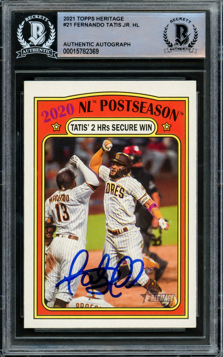 Fernando Tatis Jr. Autographed 2021 Topps Heritage Card #21 San Diego Padres Beckett BAS #15782369