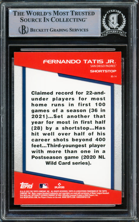Fernando Tatis Jr. Autographed 2022 Topps Card #648 San Diego Padres Beckett BAS #15782418