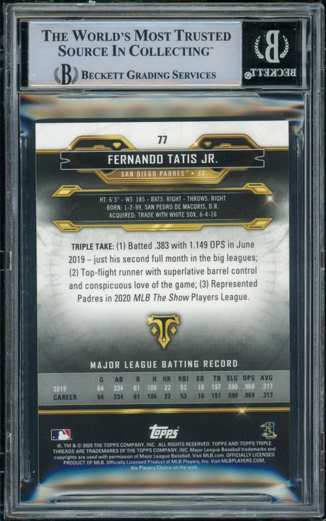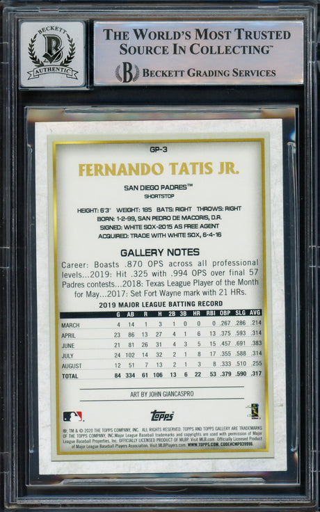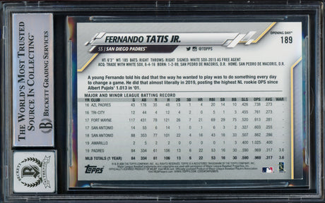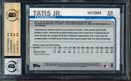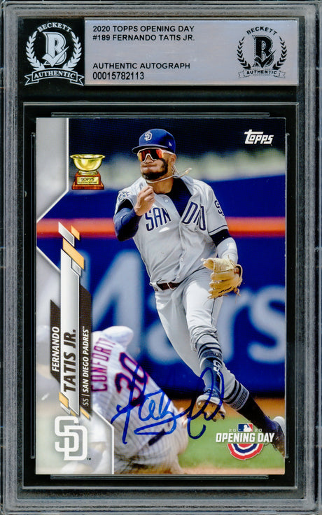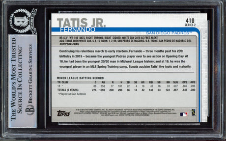 Fernando Tatis Jr. Autographed 2019 Topps Rookie Card #410 San Diego Padres Beckett BAS #15470100