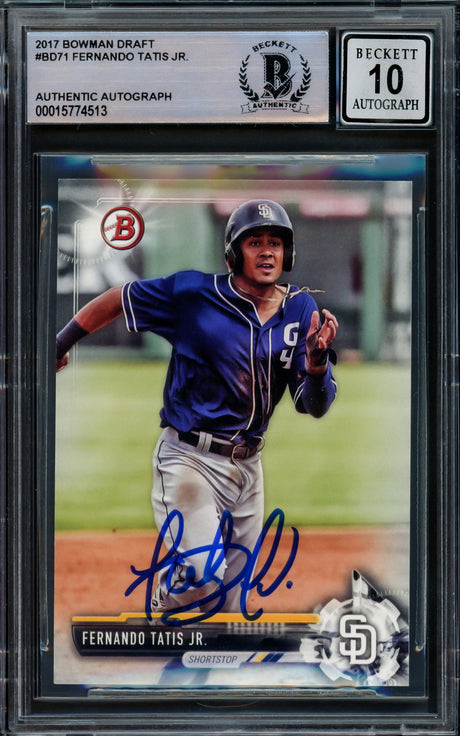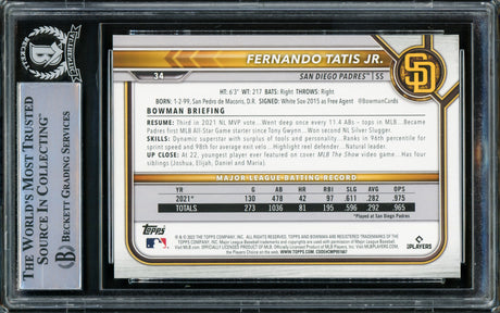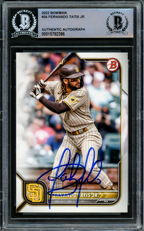 Fernando Tatis Jr. Autographed 2022 Bowman Card #34 San Diego Padres Beckett BAS Stock #216879