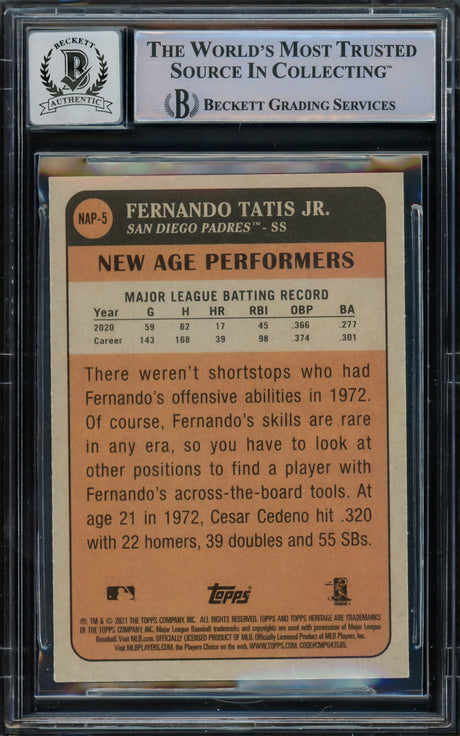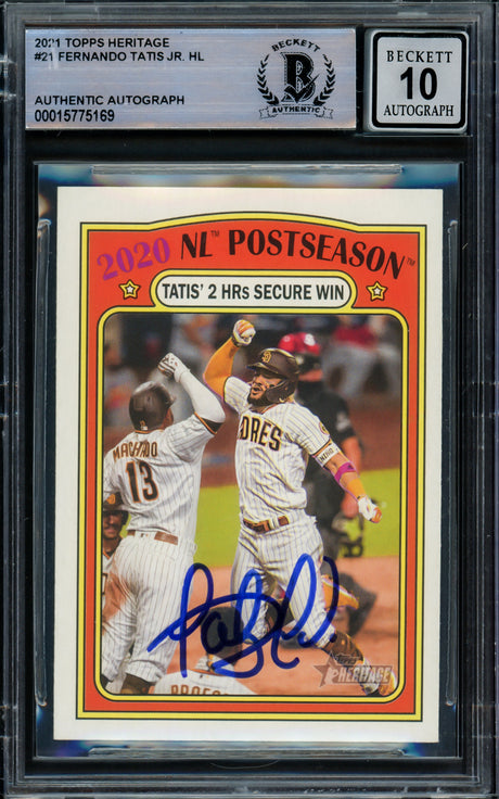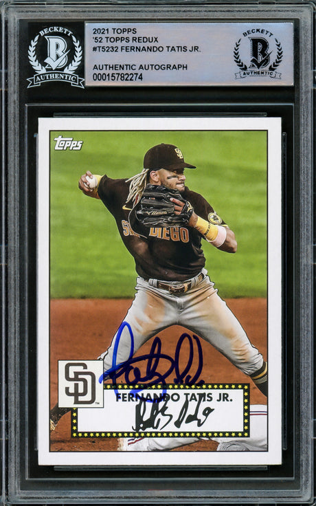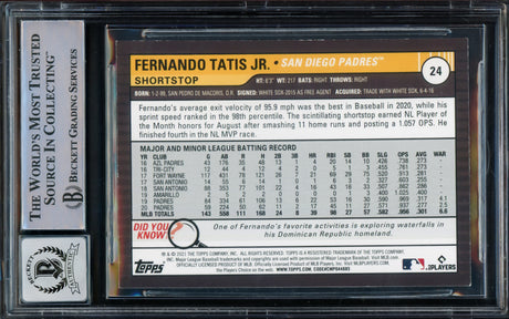 Fernando Tatis Jr. Autographed 2021 Topps Card #1 San Diego Padres Beckett BAS Stock #216877