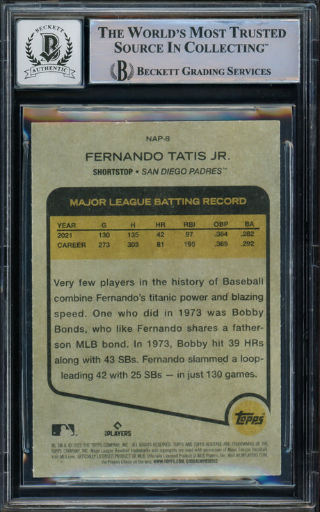 Fernando Tatis Jr. Autographed 2022 Topps Card #146 San Diego Padres Beckett BAS Stock #216882
