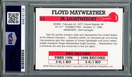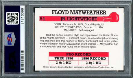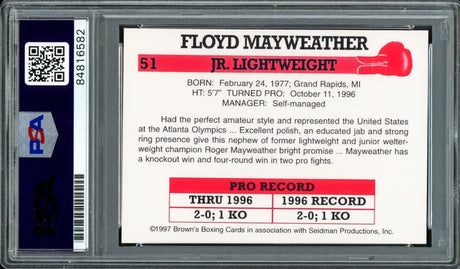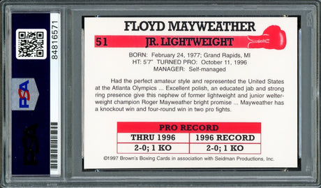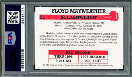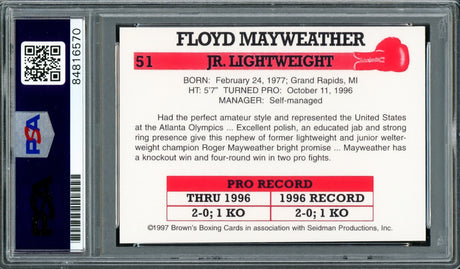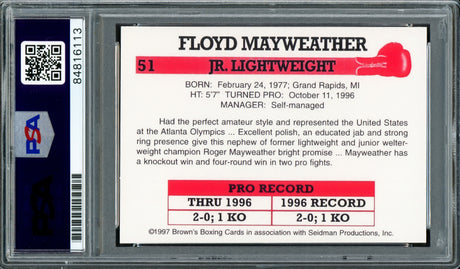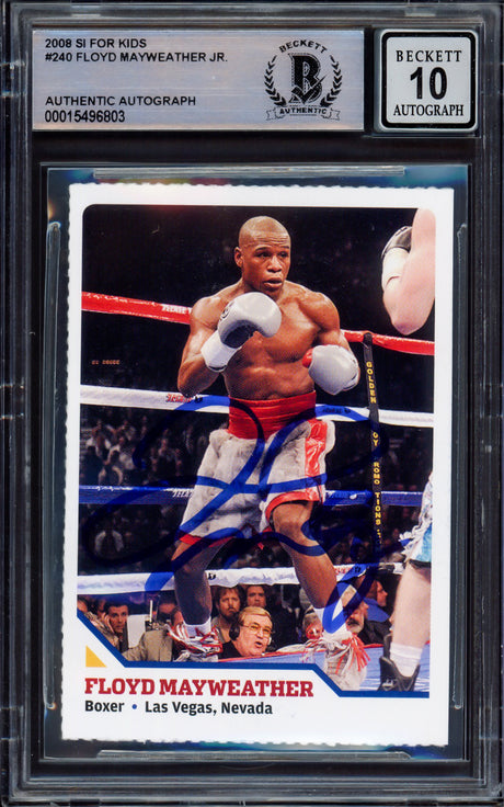Floyd Mayweather Jr. retired with a perfect 50-0 professional record, the best undefeated record in boxing history. A five-division world champion who held titles at super featherweight, lightweight, super lightweight, welterweight, and super welterweight, Mayweather dominated the sport from 1996 to 2017. His authenticated memorabilia is among the most sought-after in combat sports collecting.