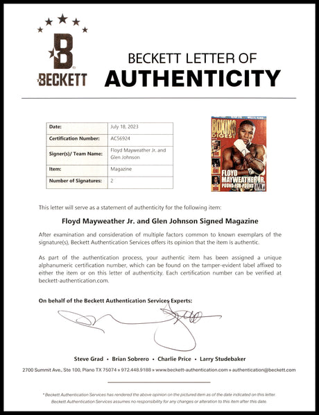 Yes. Every Floyd Mayweather signed item on Pristine Marketplace is guaranteed authentic. Each piece is verified through our network of six authentication partners — including PSA, JSA, and Beckett — and ships with a Certificate of Authenticity and tamper-evident hologram.