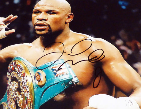 Pristine Marketplace carries a wide selection of Floyd Mayweather collectibles including signed boxing gloves, autographed photos, signed boxing trunks, championship belts, trading cards, boxing robes, and signed shoes.
