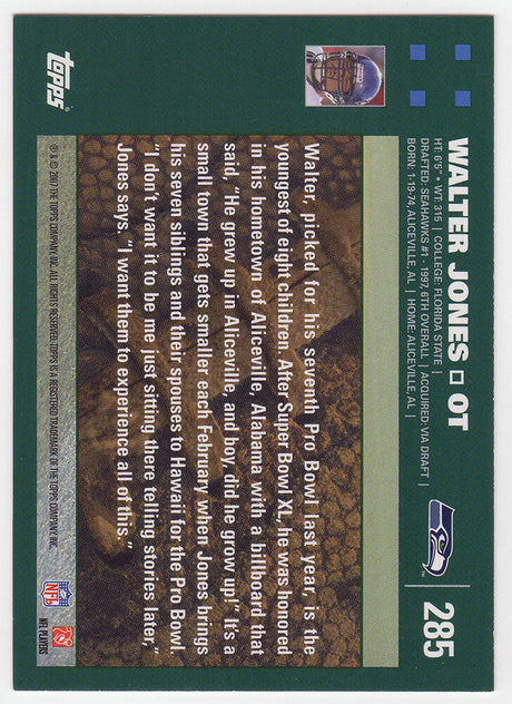 Walter Jones Signed Seattle Seahawks 2007 Topps Football Card #285