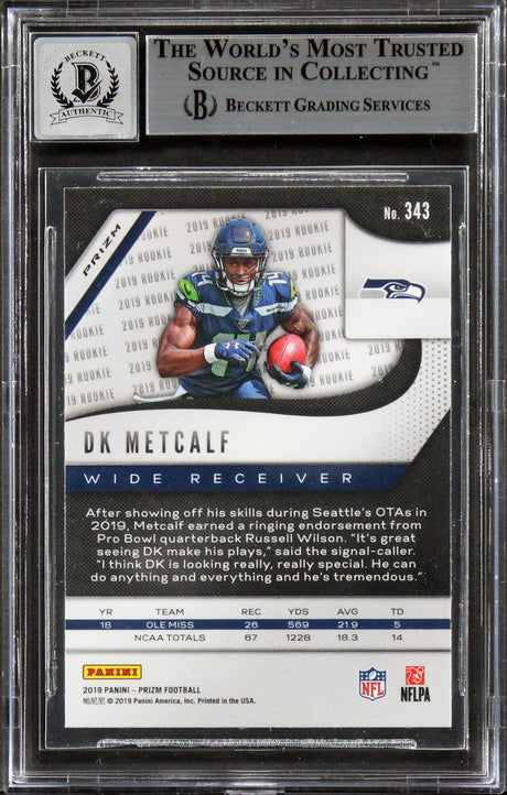 Seahawks DK Metcalf Signed 2019 Panini Prizm RW&B #343 RC Auto 10! BAS Slabbed