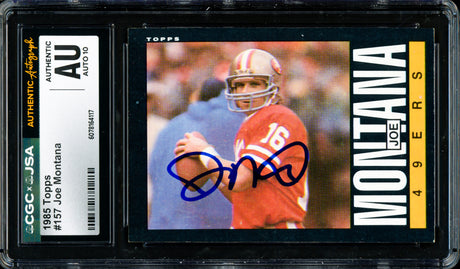 Very low stock (1 unit)$119Unit price /Unavailable Joe Montana Autographed 1984 Topps Card #359 San Francisco 49ers CGC x JSA #6078164098