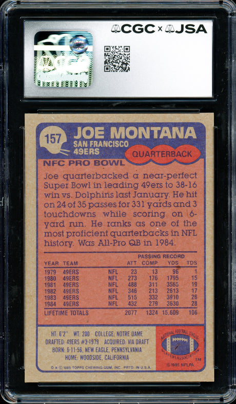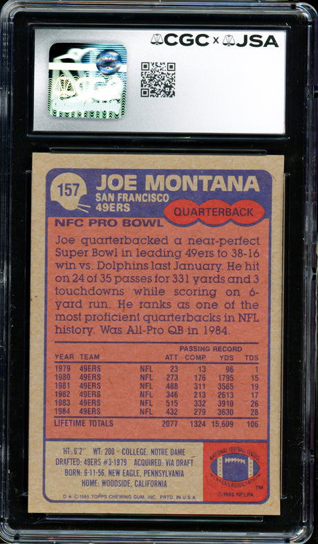 Joe Montana Autographed 1984 Topps Card #359 San Francisco 49ers CGC x JSA #6078164099