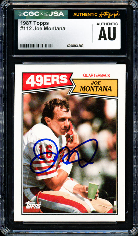 Joe Montana Autographed 1987 Topps Card #112 San Francisco 49ers CGC x JSA #6078164203