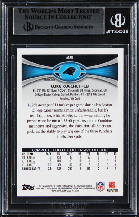 Panthers Luke Kuechly Signed 2012 Topps Chrome Xfractors #45 RC Card BAS Slabbed