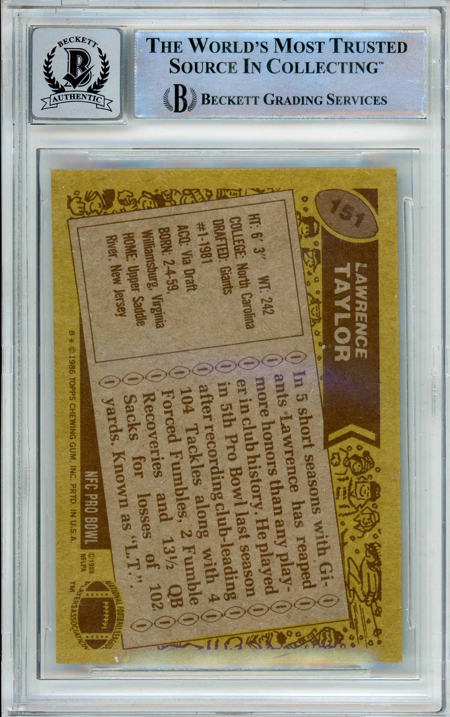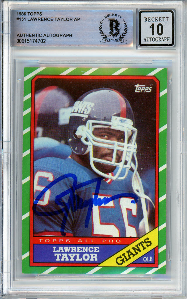 1986 Topps All-Pro #151 Lawrence Taylor New York Giants BGS Autograph 10