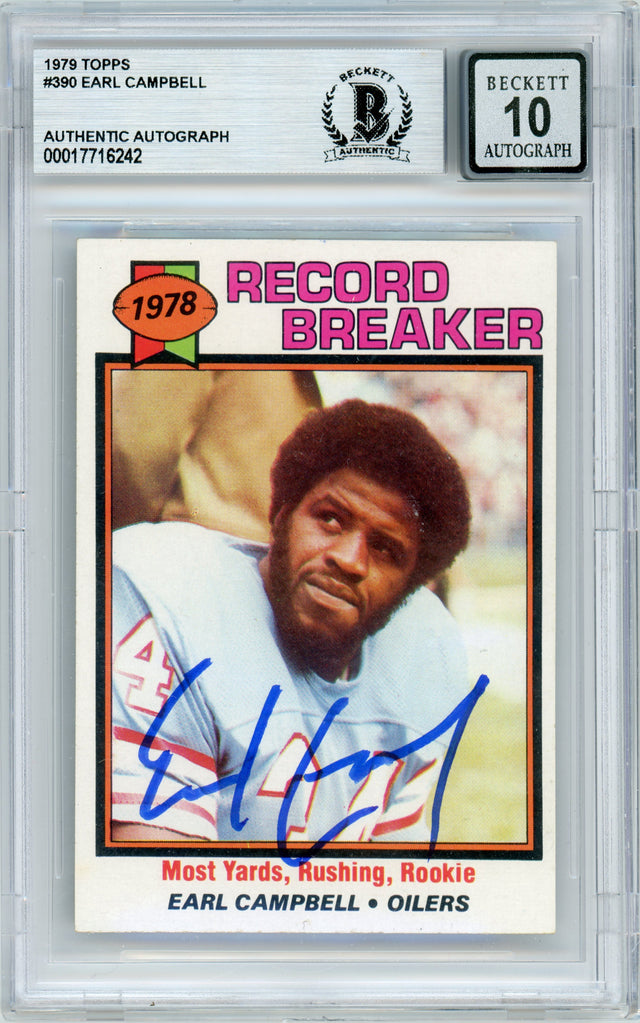 1979 Topps Record Breaker #390 Earl Campbell Houston Oilers BGS Autograph 10