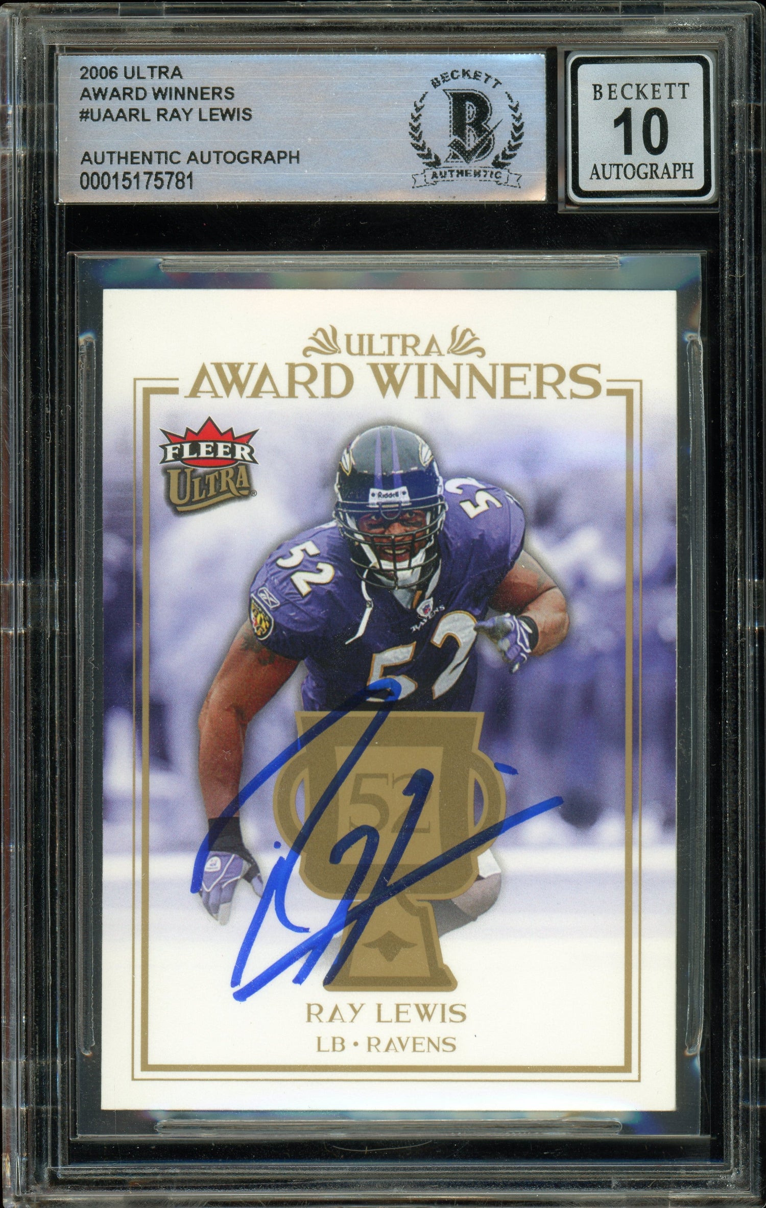 2006 Fleer Ultra Award Winners #UAA-RL Ray Lewis Ravens BGS Auto 10