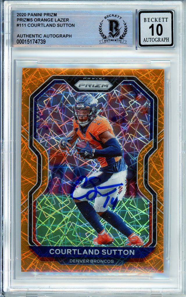 2020 Panini Prizm Orange Lazer #111 Courtland Sutton Broncos BGS Autograph 10 is backordered and will ship as soon as it is back in stock.