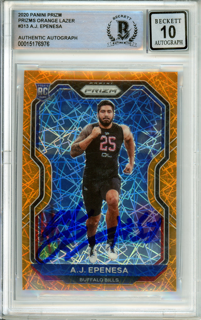2020 Panini Prizm Orange Lazer #313 AJ Epenesa RC Buffalo Bills BGS Autograph 10