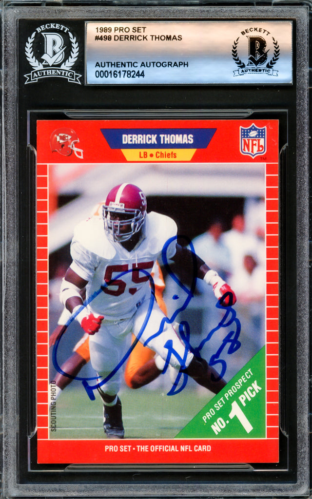 Derrick Thomas Autographed 1989 Pro Set Rookie Card #498 Kansas City Chiefs Beckett BAS #16178244