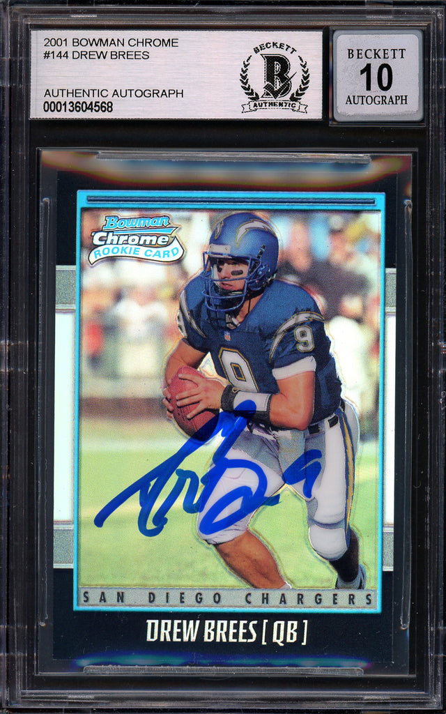 Drew Brees Autographed 2001 Bowman Chrome Refractor Rookie Card #144 San Diego Chargers Auto Grade Gem Mint 10 #1350/1999 Beckett BAS #13604568