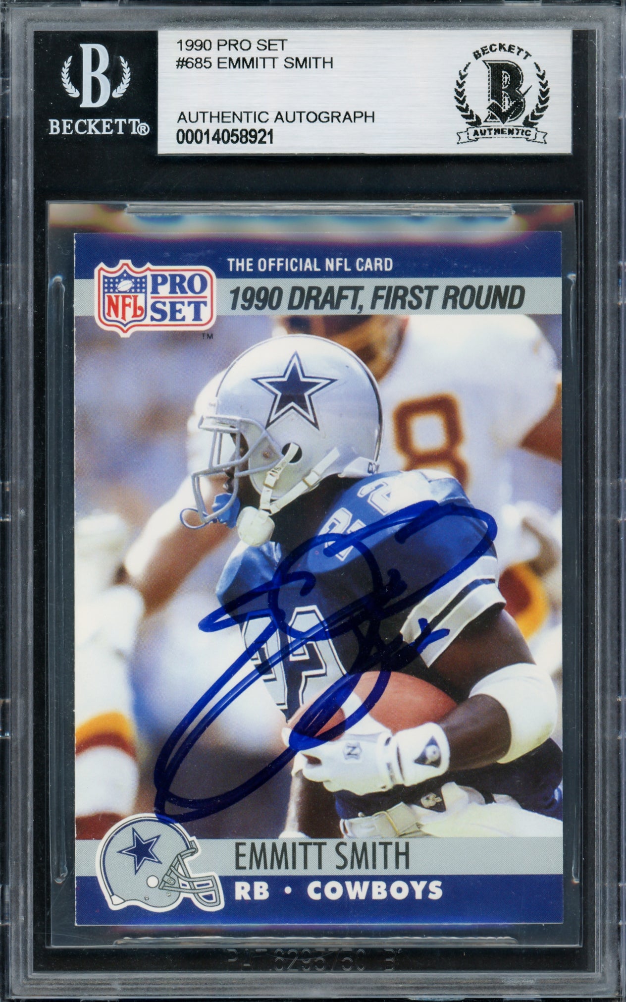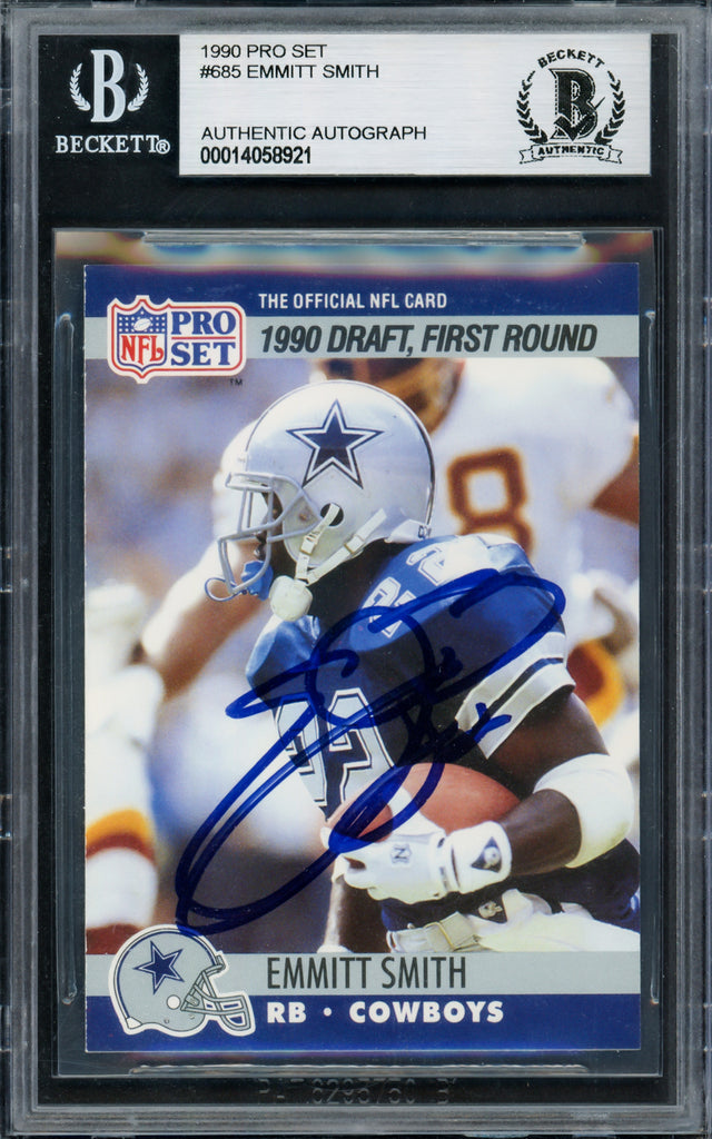 Emmitt Smith Autographed 1990 Pro Set Rookie Card #685 Dallas Cowboys Beckett BAS #14058921