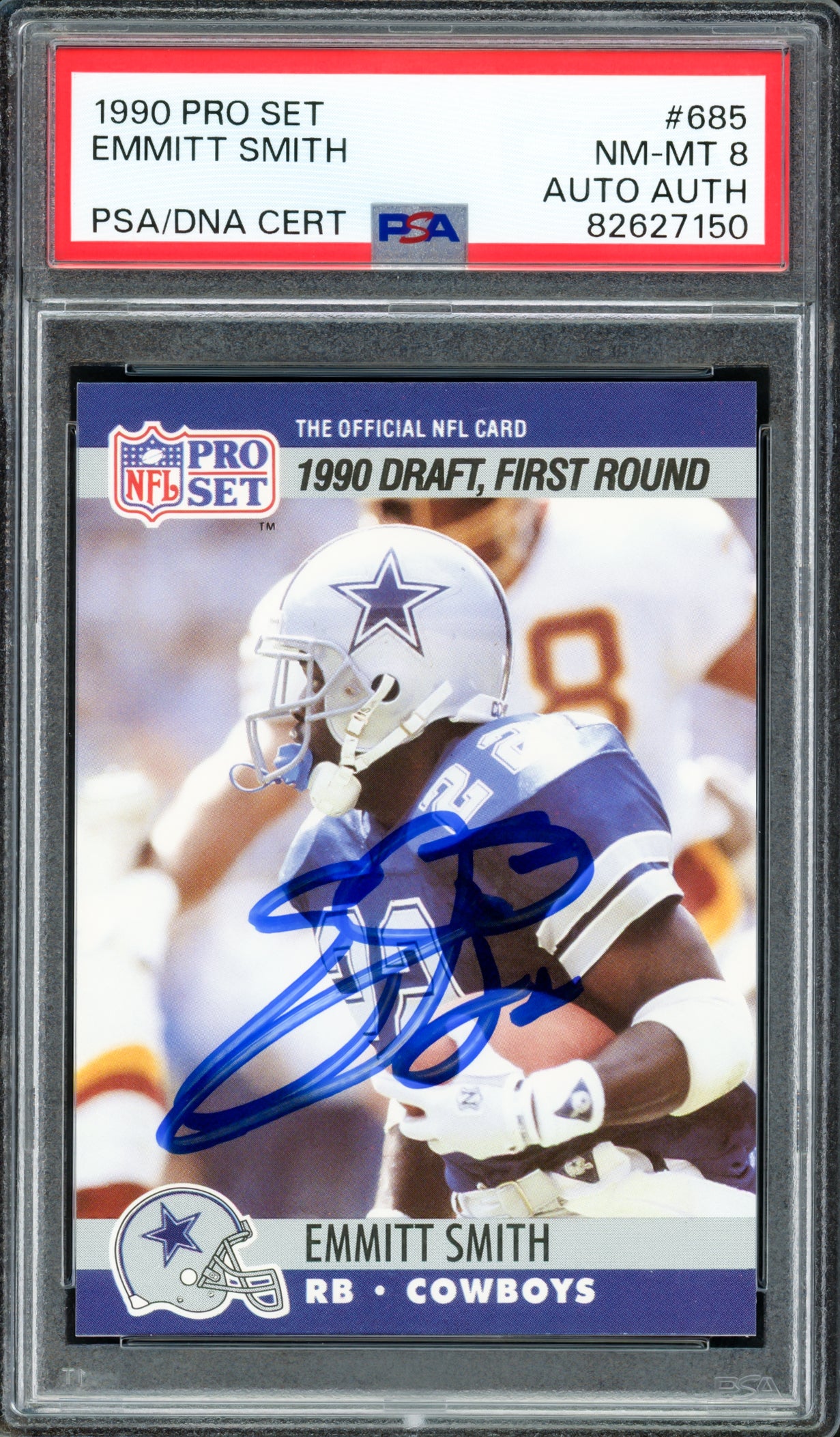 Emmitt Smith Autographed 1990 Pro Set Rookie Card #685 Dallas Cowboys PSA 8 PSA/DNA #82627150