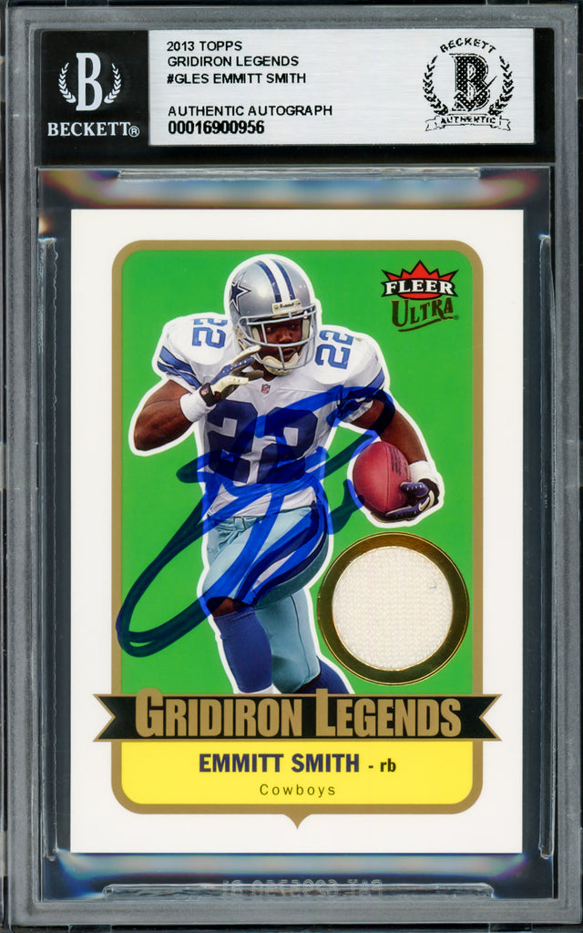 Emmitt Smith Autographed 2013 Topps Gridiron Legends Game Used Jersey Card #GLES Dallas Cowboys With Game Used Jersey Patch Beckett BAS #16900956