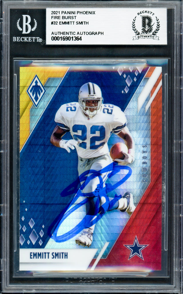 Emmitt Smith Autographed 2021 Panini Phoenix Fire Burst Card #32 Dallas Cowboys Beckett BAS #16901364
