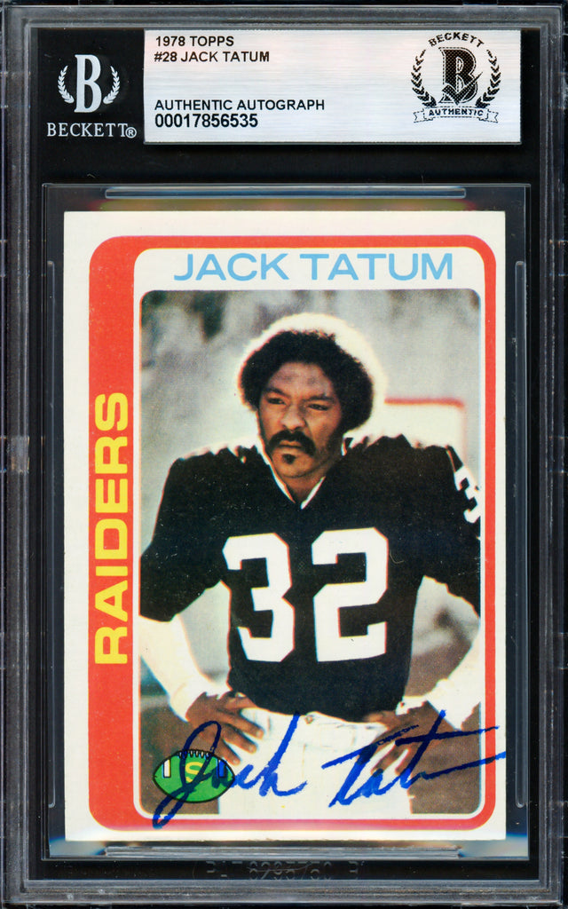 Jack Tatum Autographed 1978 Topps Card #28 Oakland Raiders Beckett BAS #17856535