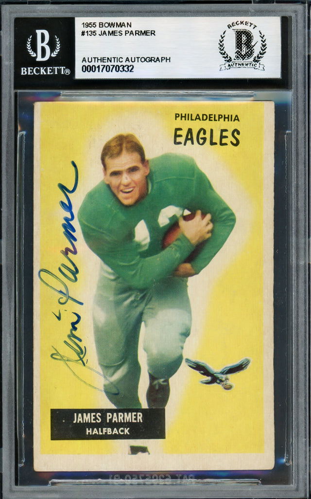 James Parmer Autographed 1955 Bowman Rookie Card #135 Philadelphia Eagles Beckett BAS #17070332