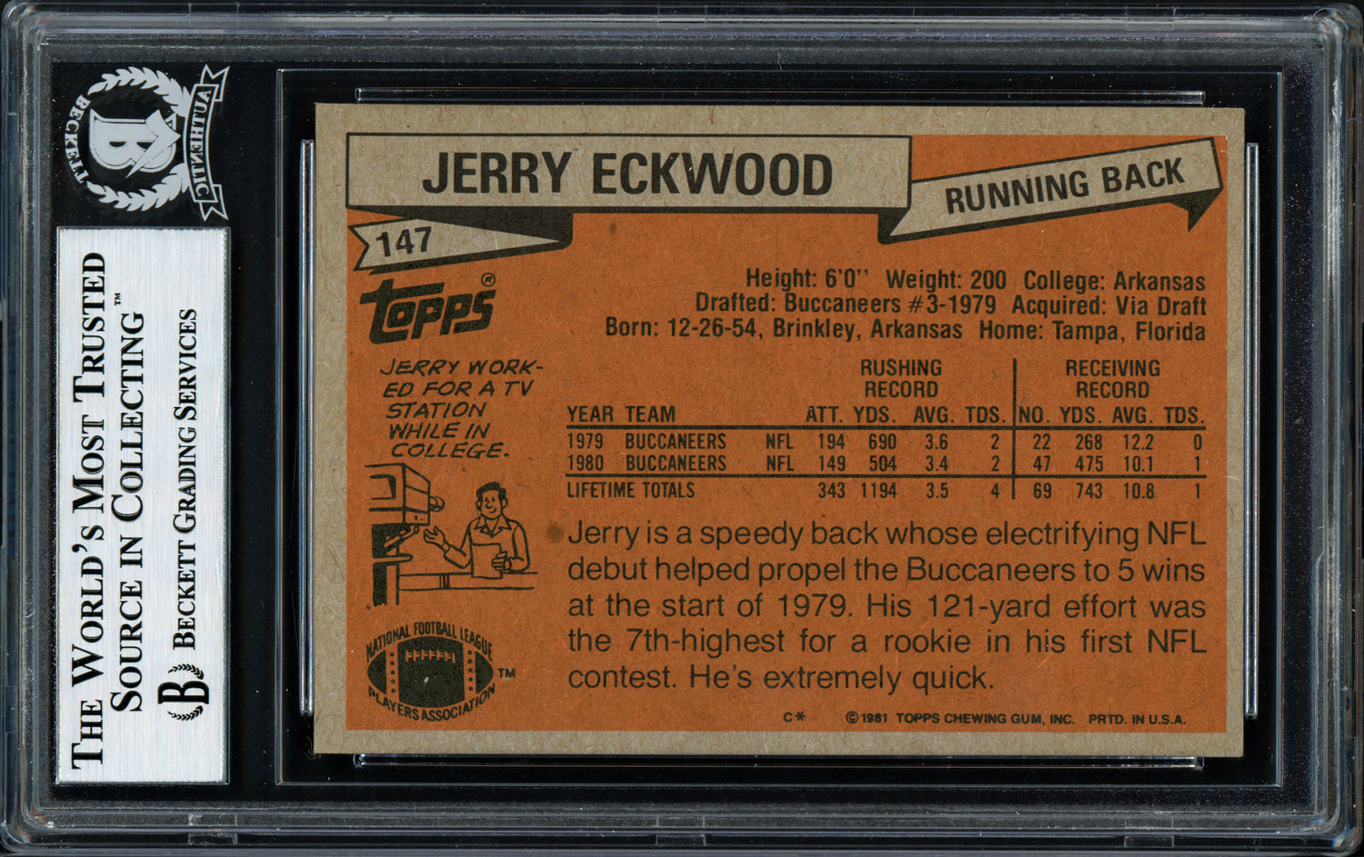 Jerry Eckwood Autographed 1981 Topps Card #147 Tampa Bay Buccaneers Beckett BAS #12058721