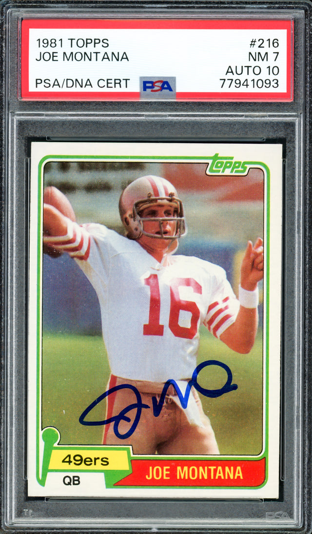 Joe Montana Autographed 1981 Topps Rookie Card #216 San Francisco 49ers PSA 7 Auto Grade Gem Mint 10 PSA/DNA #77941093