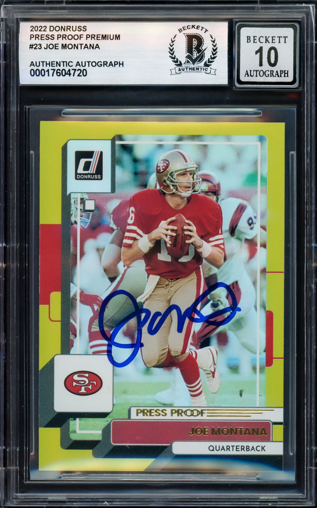Joe Montana Autographed 2022 Donruss Gold Card #23 San Francisco 49ers Auto Grade Gem Mint 10 Beckett BAS #17604720