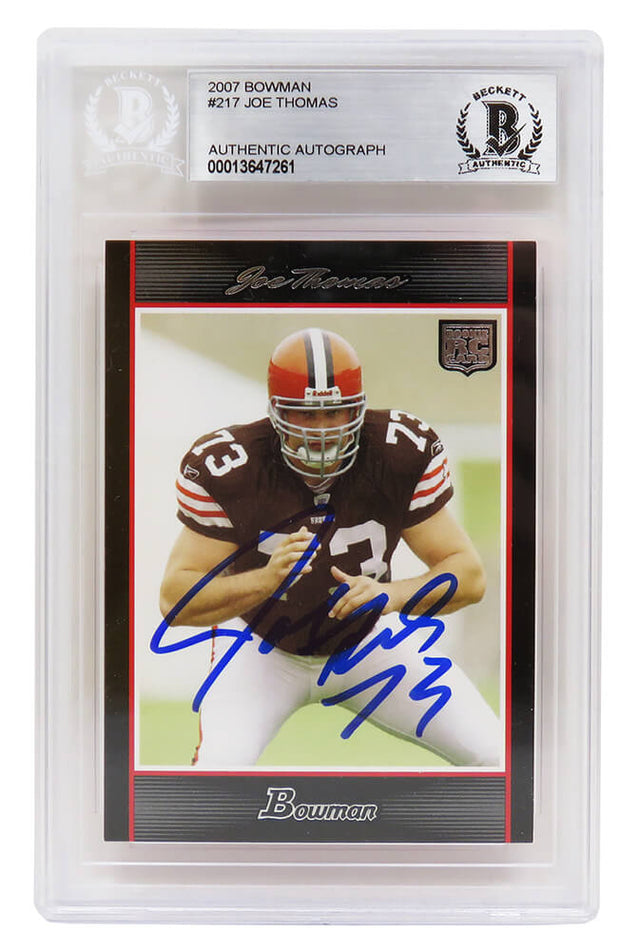 Joe Thomas Signed Cleveland Browns 2007 Bowman Football Rookie Card #217 - (Beckett Encapsulated)