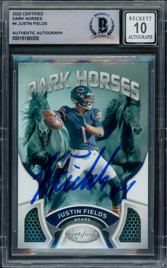 Justin Fields Autographed 2021 Certified Dark Horses Rookie Card #DH-4 Chicago Bears Auto Grade Gem Mint 10 Beckett BAS #16168350