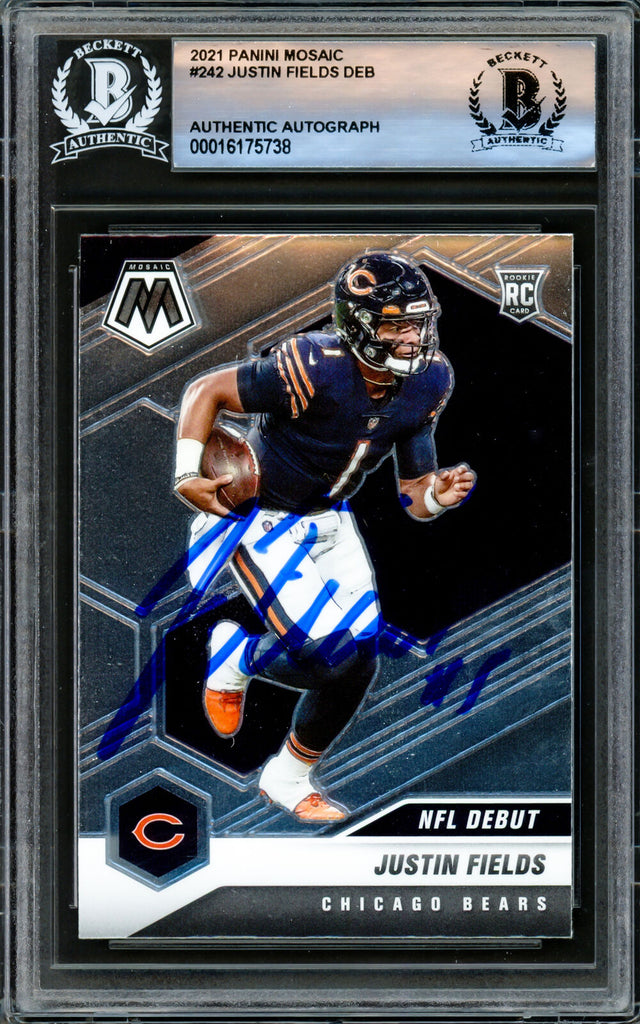 Justin Fields Autographed 2021 Mosaic Rookie Card #242 Chicago Bears Beckett BAS Stock #221183 is backordered and will ship as soon as it is back in stock.