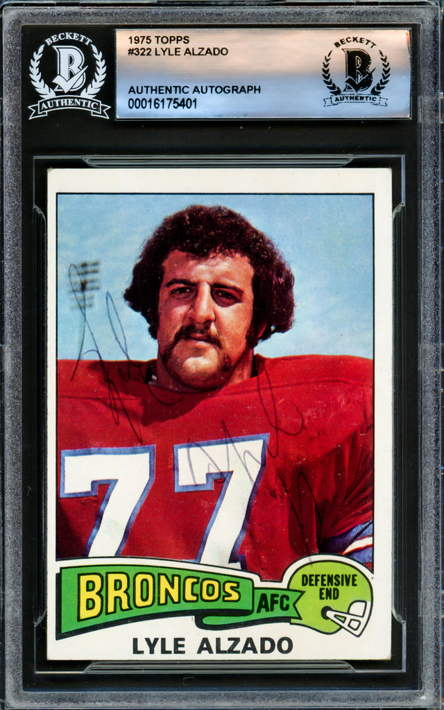 Lyle Alzado Autographed 1975 Topps Card #322 Denver Broncos Beckett BAS #16175401