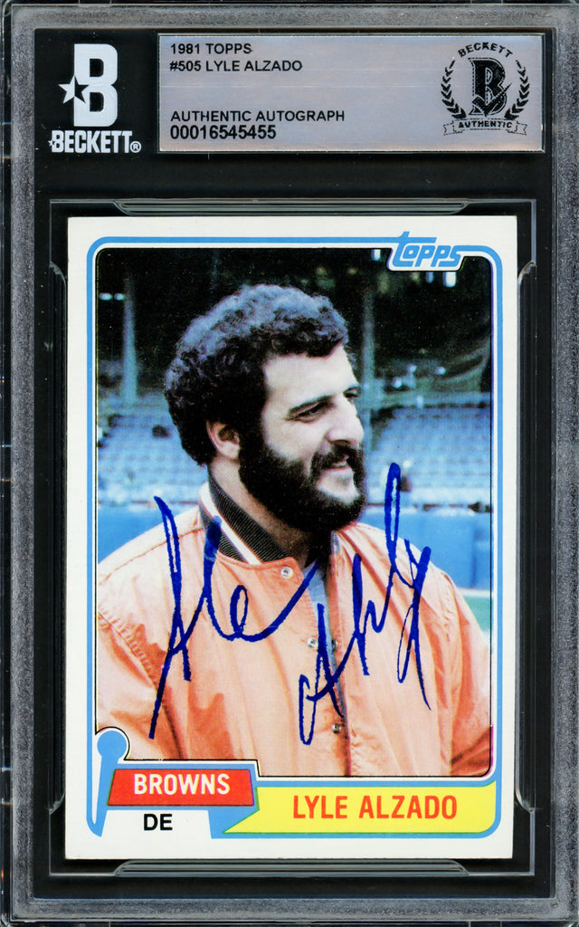 Lyle Alzado Autographed 1981 Topps Card #505 Cleveland Browns Beckett BAS #16545455