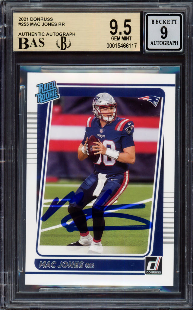 Mac Jones Autographed 2021 Donruss Rated Rookie Card #255 New England Patriots BGS 9.5 Auto Grade Mint 9 Beckett BAS #15466117