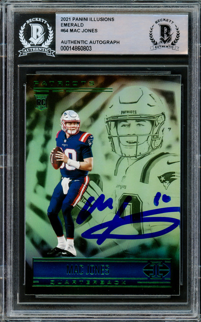 Mac Jones Autographed 2021 Panini Illusions Green Emerald Rookie Card #64 New England Patriots Beckett BAS #14860803 is backordered and will ship as soon as it is back in stock.