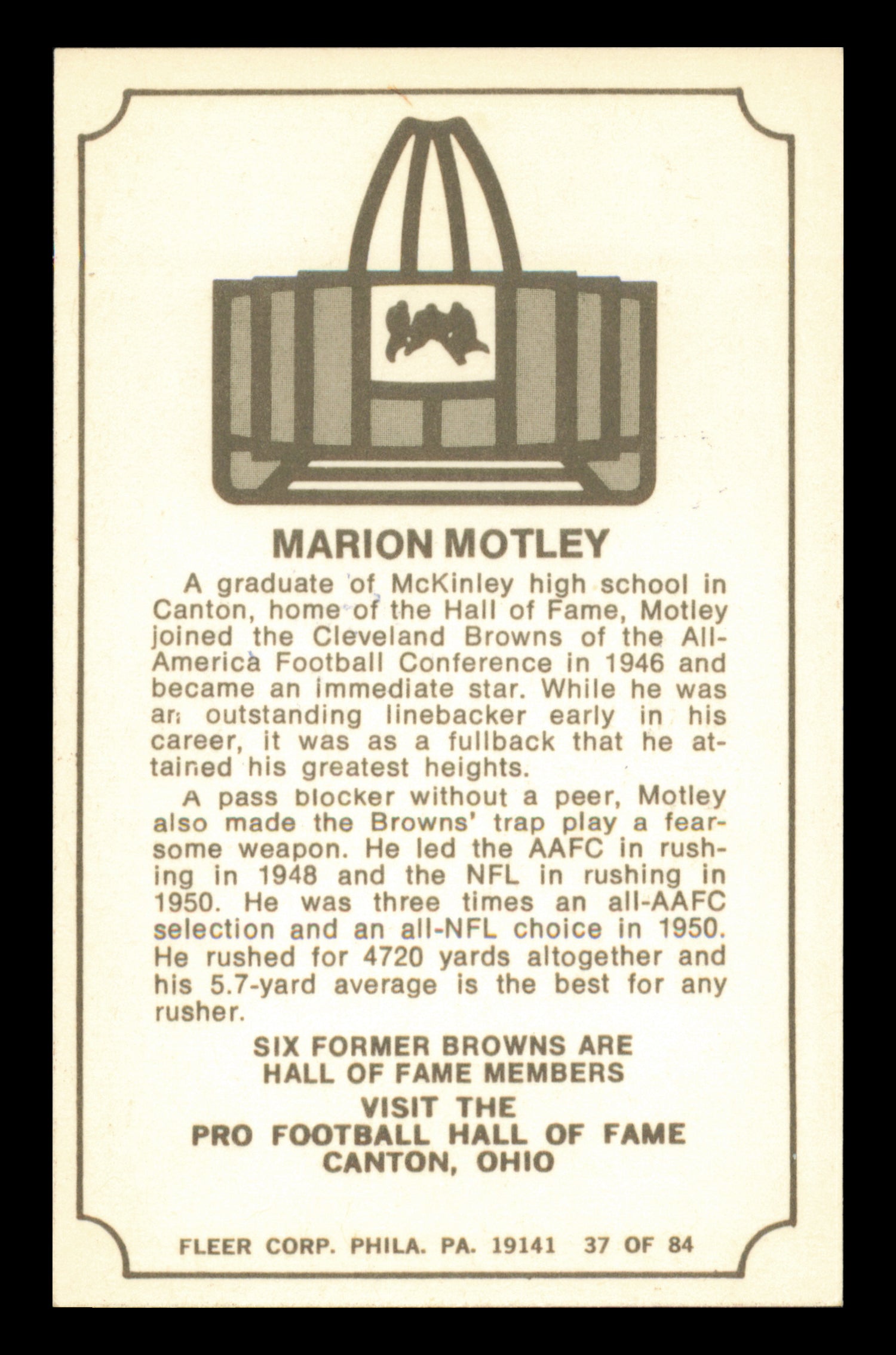 Marion Motley Autographed 1975 Fleer Card #37 Cleveland Browns SKU #240923