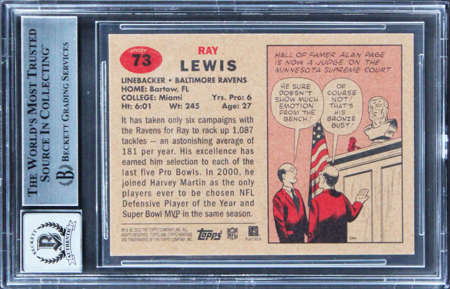 Ravens Ray Lewis Signed 2002 Topps Heritage #73 Card Auto Graded 10! BAS Slabbed