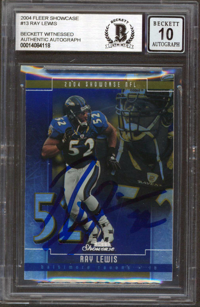 Ravens Ray Lewis Signed 2004 Fleer Showcase #13 Card Auto Graded 10! BAS Slabbed